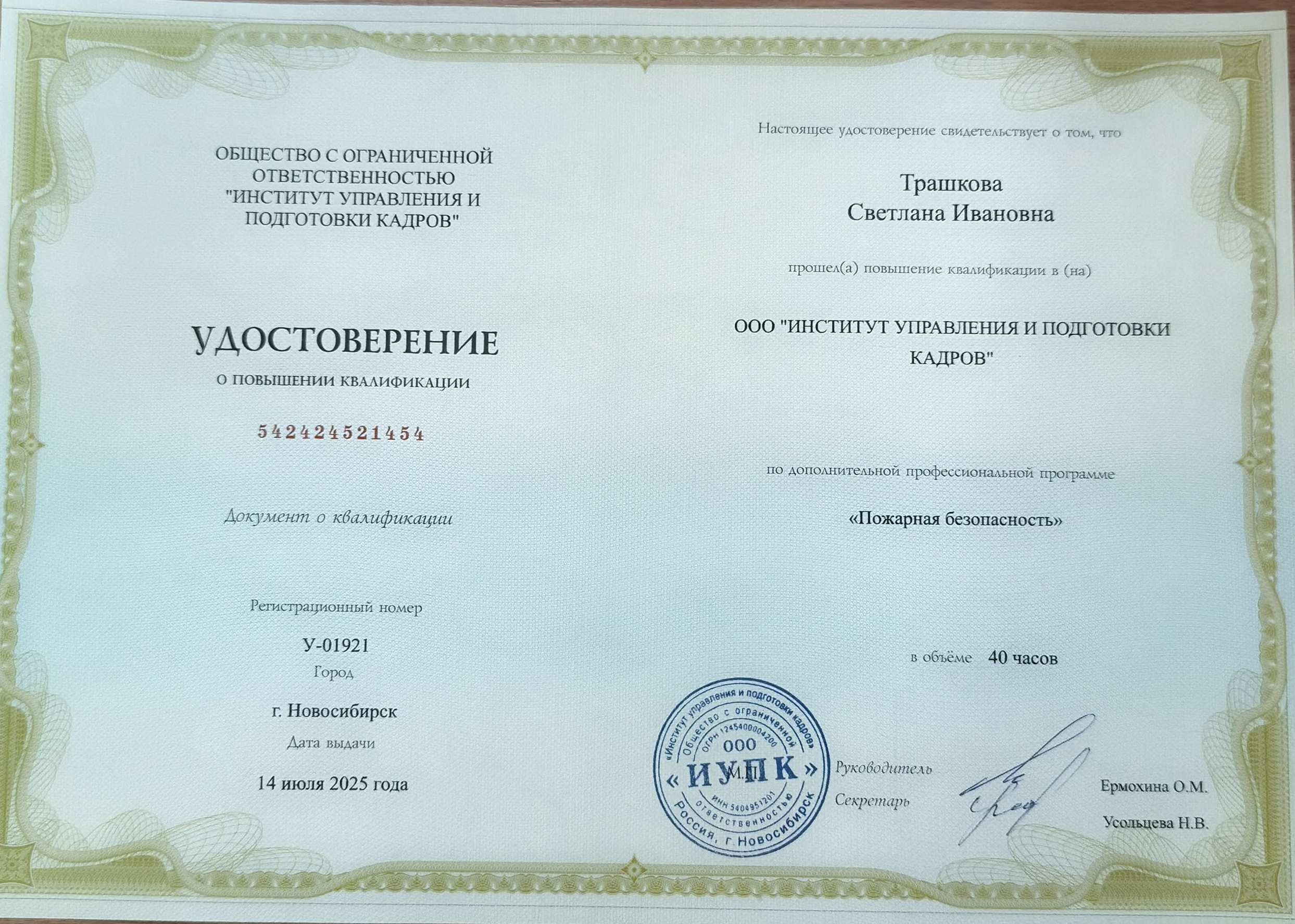 (ООО Институт управления и подготовки кадров. 40часов. Форма обучения: Дистанционное. Направленность: иное).
